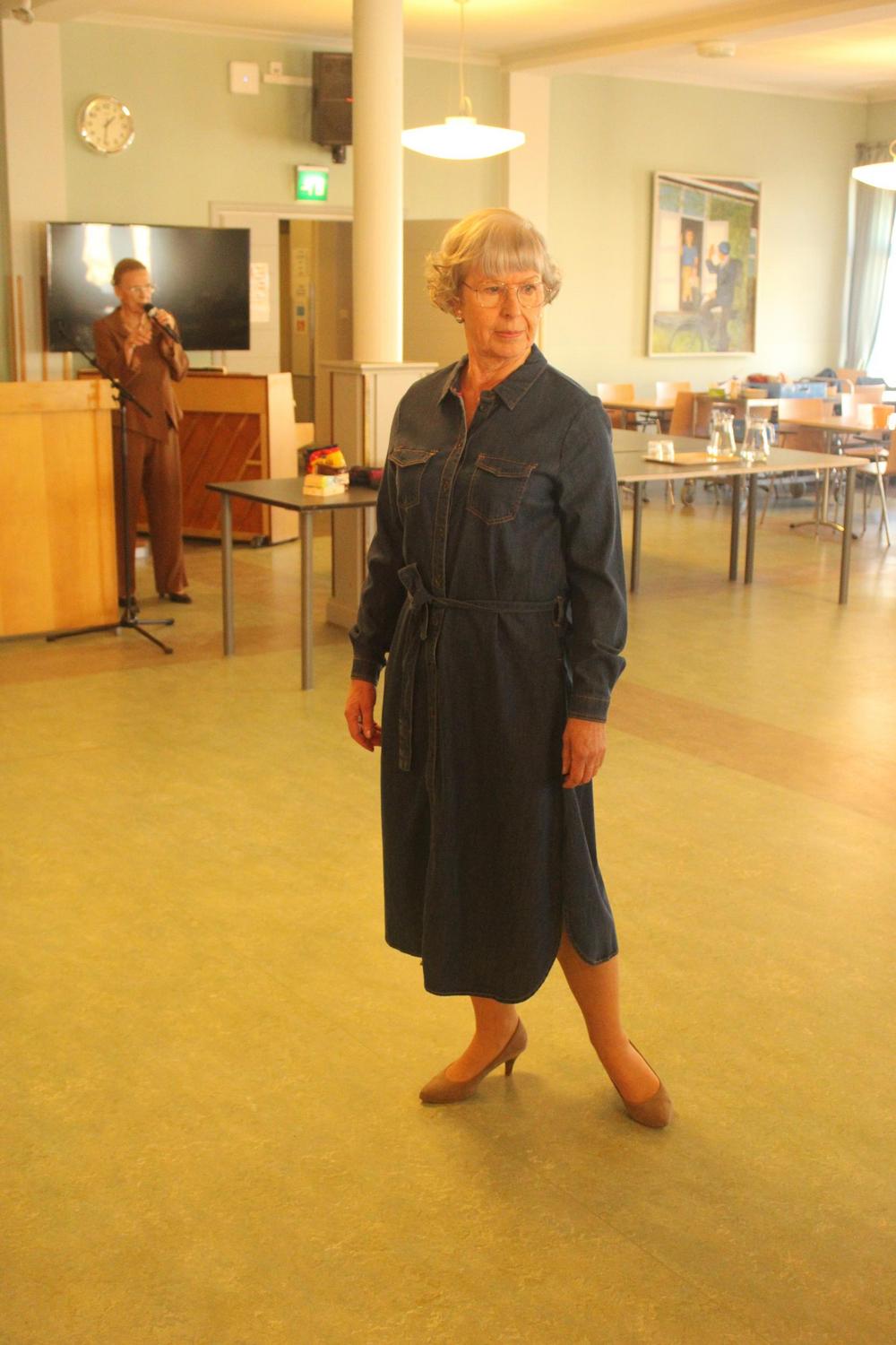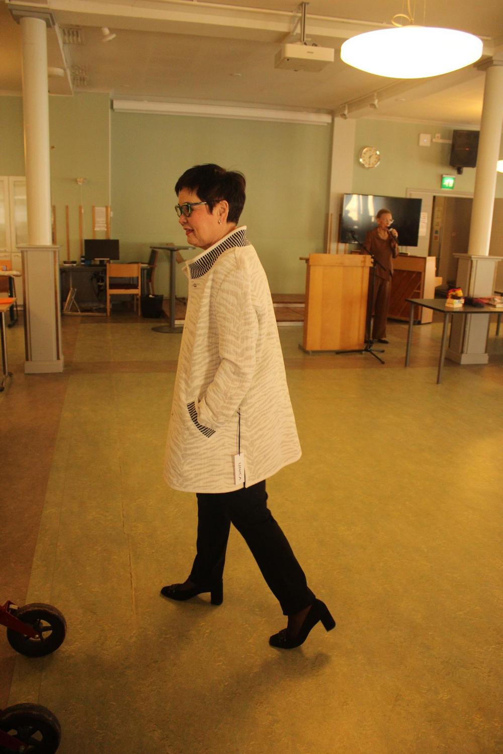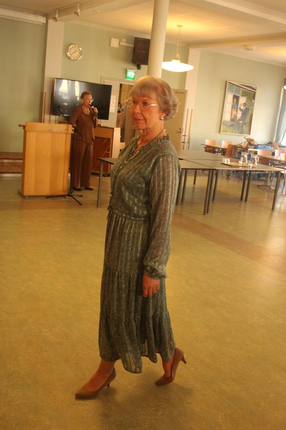 Mannekiineina Pirjjo Bastman, Maija-Leena Virta-Kangas, Eeva Rautakorpi, Tuula Jokinen, Heli Sohlo ja Anita Kallio, taustalla juontajana Maija-Leena Laajanen Uudesta Muodista