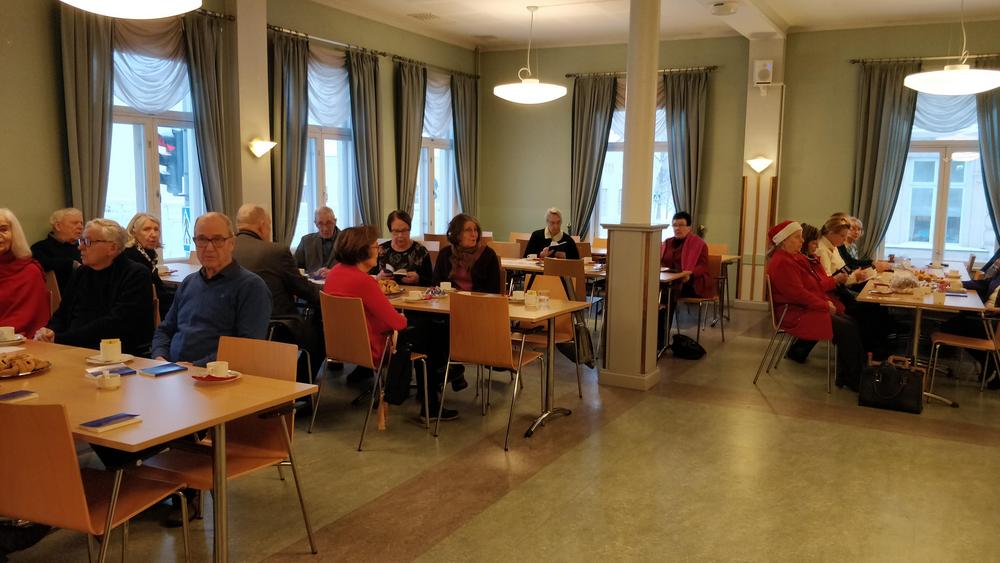 Perinteisesti nautimme yhdessä joulupuuroa ja soppaa sekä tietysti torttukahvit. Meitä ilahdutti Suvi Partasen johdolla esiintynyt Tuiran koulun 6. musiikkiluokan Tiernapoika-esitys. Myyjäisissä oli tarjolla jäsenten valmistamia herkkuja eikä arpajaispalkinnoissakaan pihistelty. Joululauluja säesti Tuula Peltomäki.