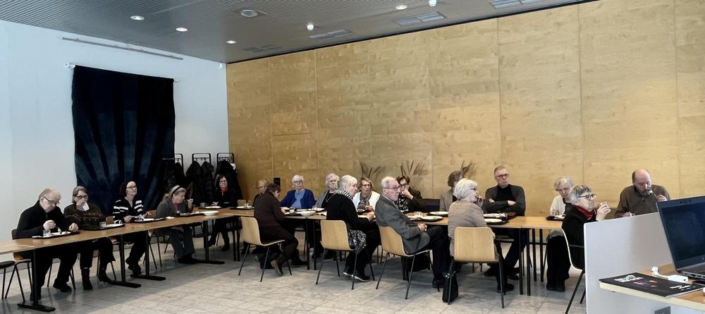 Oli virkistävää kuulla eloisaa ja humoristista musiikkia. Lounaalla kuulimme sitten viestintäpäällikkö Heli Perkkiön puhetta ja uuden työntekijän Laura Virsiheimon esittelyä.