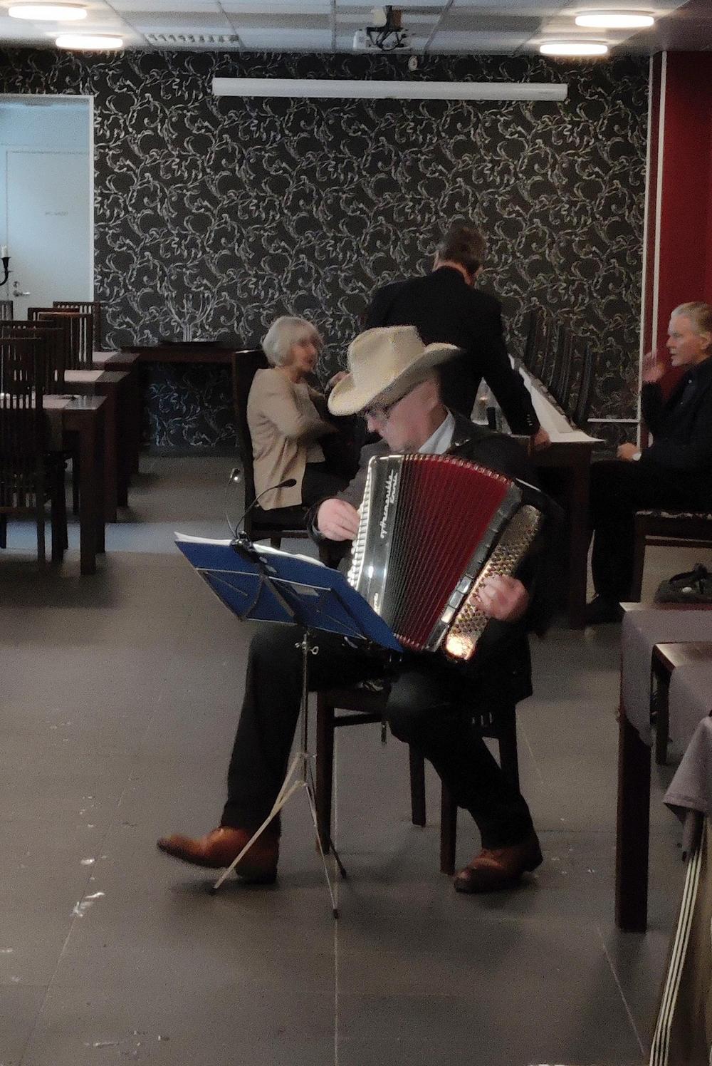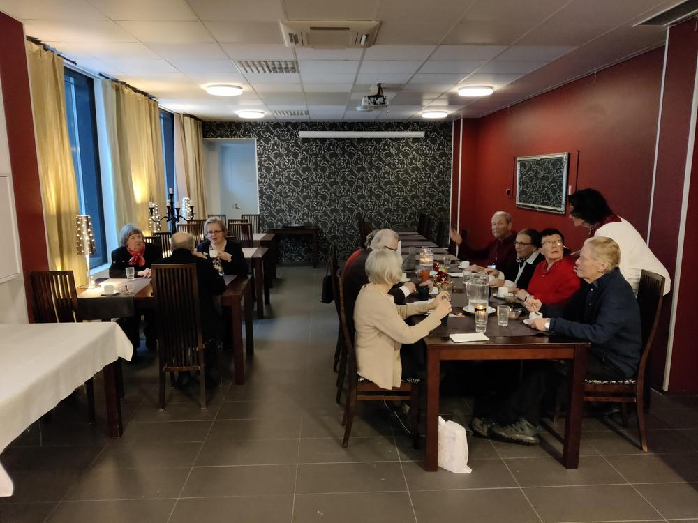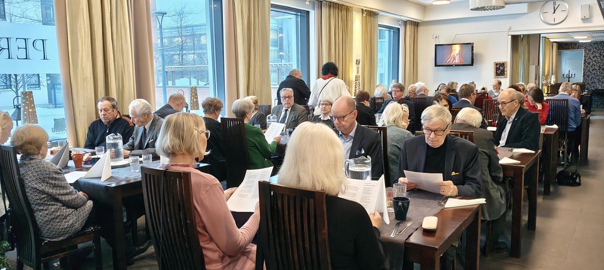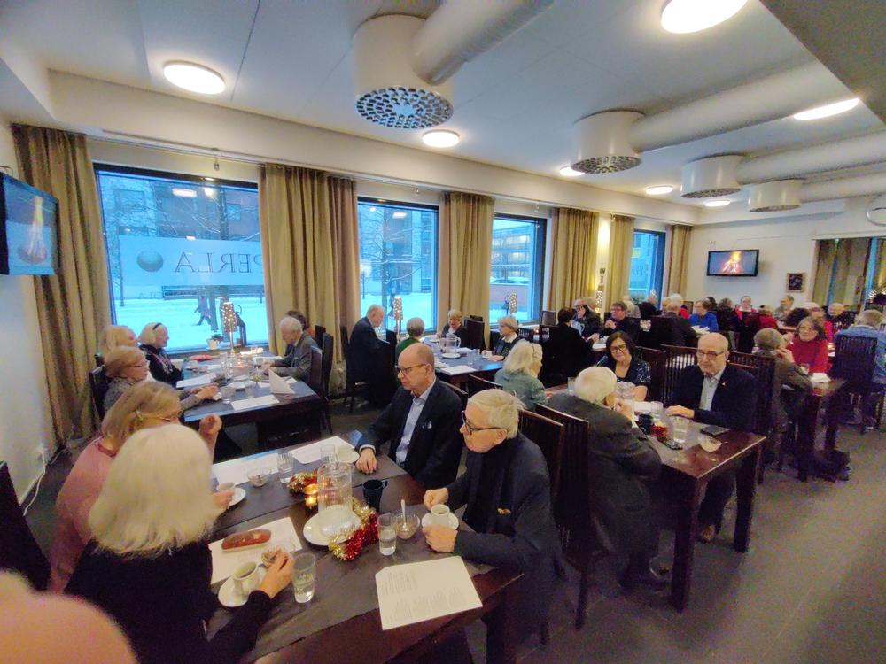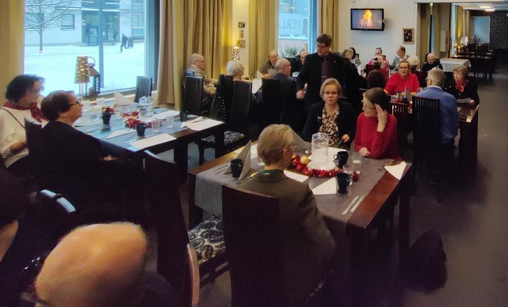 Syyskauden päätös ravintola Perlassa. Syötiin hyvin ja laulettiin tuttuja joululauluja hanuristi Pentti Kaustisen säestämänä.