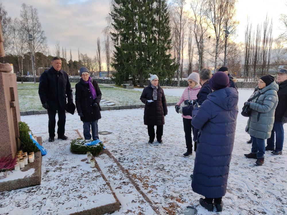 Kävimme pyhäinpäivänä sytyttämässä kynttilät Oulun sankarihaudoille. Jouko piti pienen puheen ja lauloimme virren.