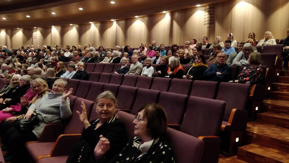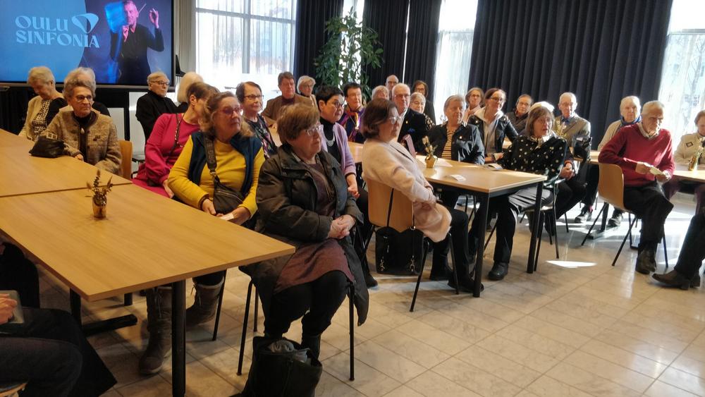 Ennätysjoukko Oulun senioreiden jäseniä - 44 jäsentä - osallistui Oulun sinfoniaorkesterin ja Rajattoman konserttiin Rajaton sings Abba. Oulun musiikkikeskukseen tulimme aikaisin aamulla klo 9.30, jolloin alkoi infotilaisuus. Itse konsertti alkoi klo 10.